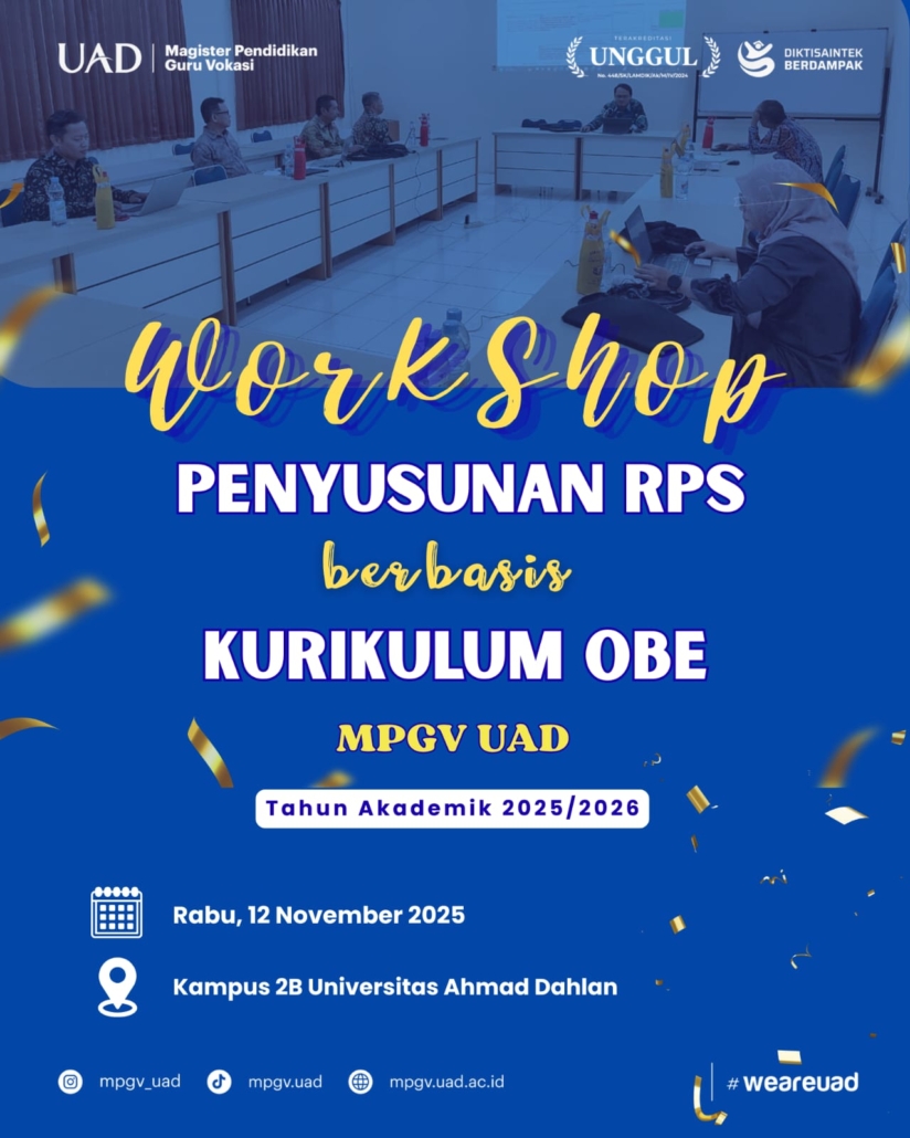 ✨Allhamdulilah, telah terselenggara Workshop Penyusunan RPS Berbasis Kurikulum OBE Program Studi Magister Pendidikan Guru Vokasi Universitas Ahmad Dahlan TA 2025/2026✨